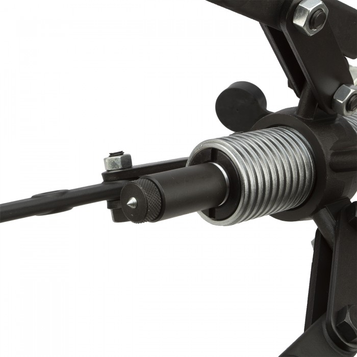 В отличие от моделей с встроенными насосами, этот инструмент работает с внешним насосом, что даёт больше возможностей для регулировки давления и продолжительности работы без перегрева. С максимальной нагрузкой 8 тонн справляется с различными задачами, такими как демонтаж подшипников и других крупных узлов. Инструмент надежный и прочный, идеально подходит для использования в мастерских с большим объёмом работы.