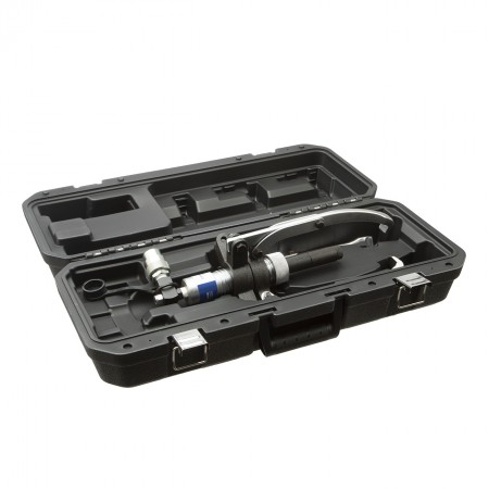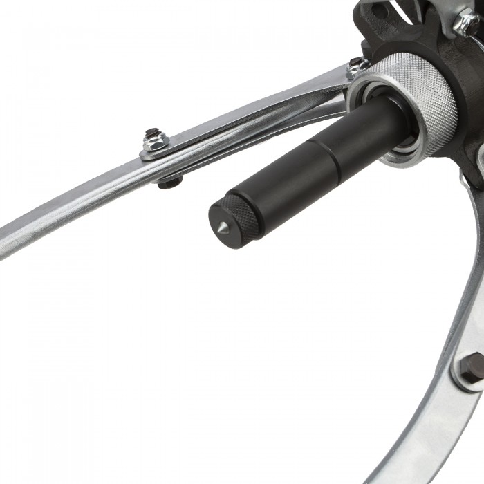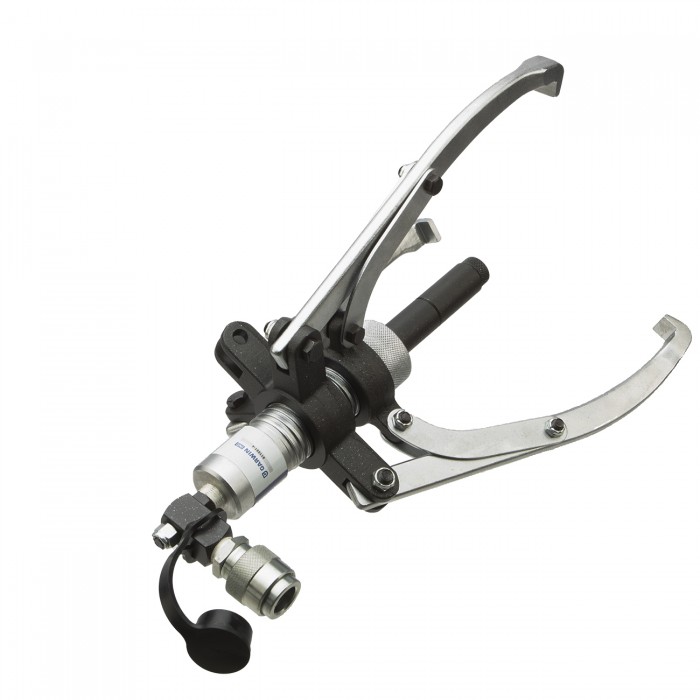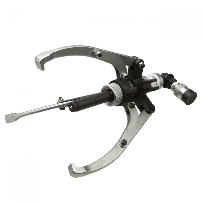 Внешний насос обеспечивает подачу масла в гидравлический цилиндр съемника, создавая давление, которое позволяет отделить деталь от посадочного места. Самоцентрирующаяся конструкция позволяет использовать съемник на деталях различных диаметров без необходимости дополнительной настройки.