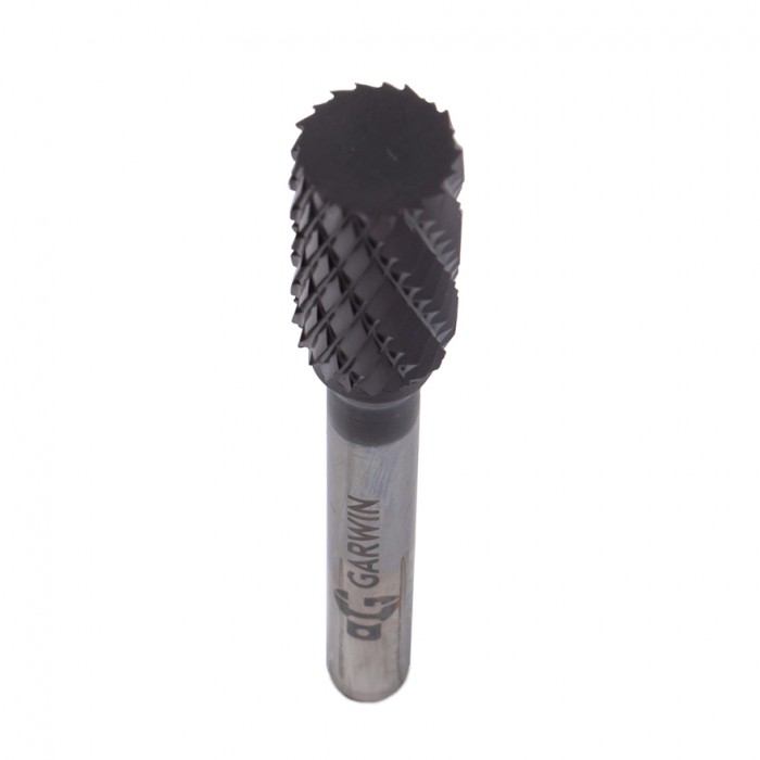 Тип насечки - DC (Double Cut). Двойная насечка с разнонаправленными зубьями. Обрабатывает такие материалы как: медь, латунь, бронза, чугун, стали твердостью 40-50 HRC, 55-60 HRC, высокоуглеродистая сталь, хромоникелевая сталь, нержавеющая сталь, сварные соединения сталей, титан.