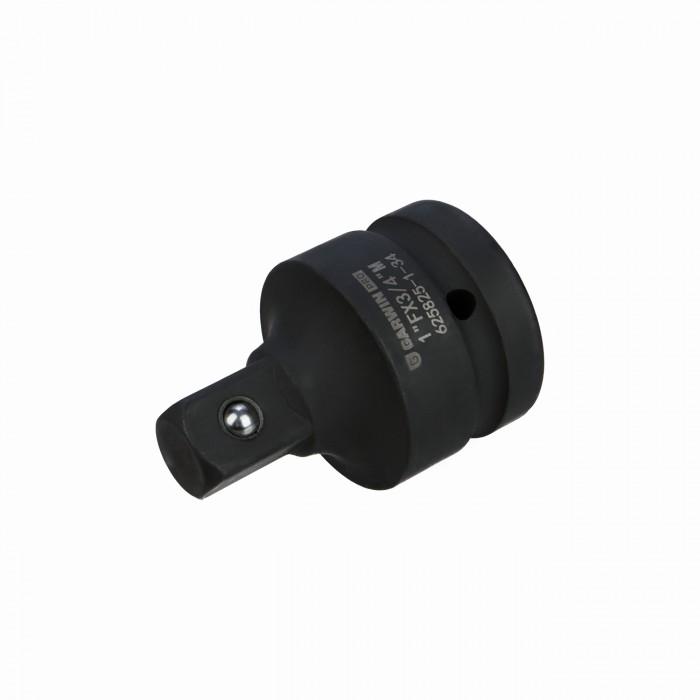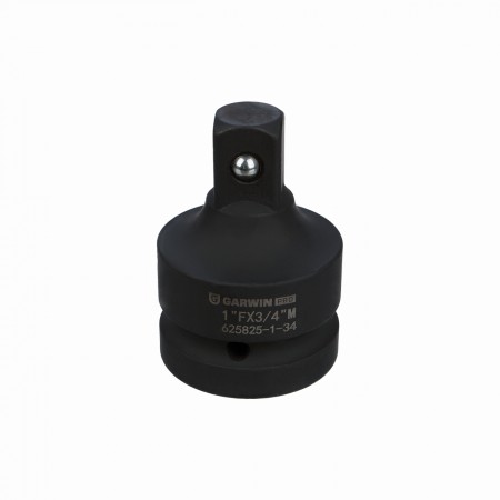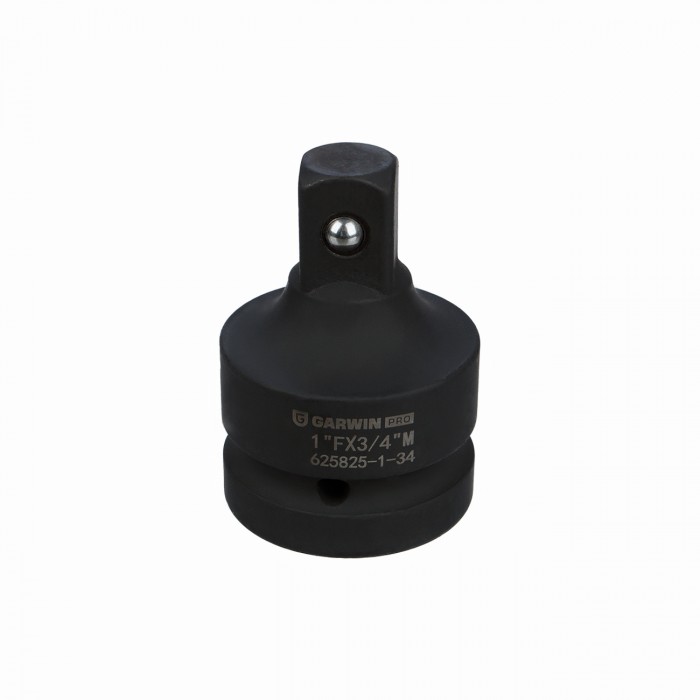 Переходник ударный GARWIN PRO 625825-1, с шариковым фиксатором. Применяется для передачи крутящего момента на торцевые головки от пневматического или электрического инструмента ударного действия. Используется в ситуациях, когда размер приводного вала не соответствует посадочному квадрату нужной головки. Размер: “мама” - 1 дюйм, “папа” - 3/4 дюйма.