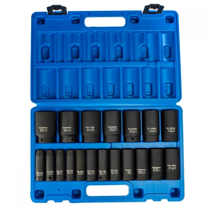 Набор ударных головок предназначен для монтажа/демонтажа резьбовых соединений с помощью ударных гайковёртов.