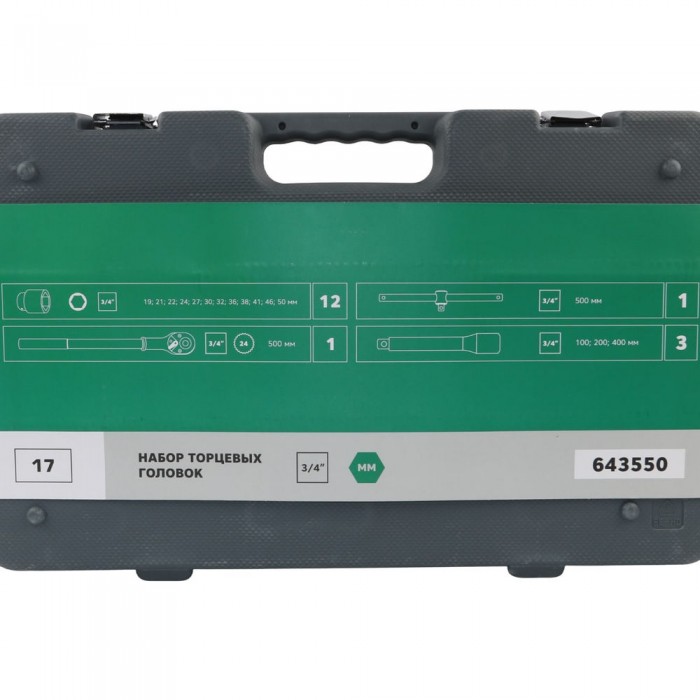 Набор торцевых головок 3/4" 6 гр., 19-50 мм, 17 пр., GARWIN PRO, 643550
