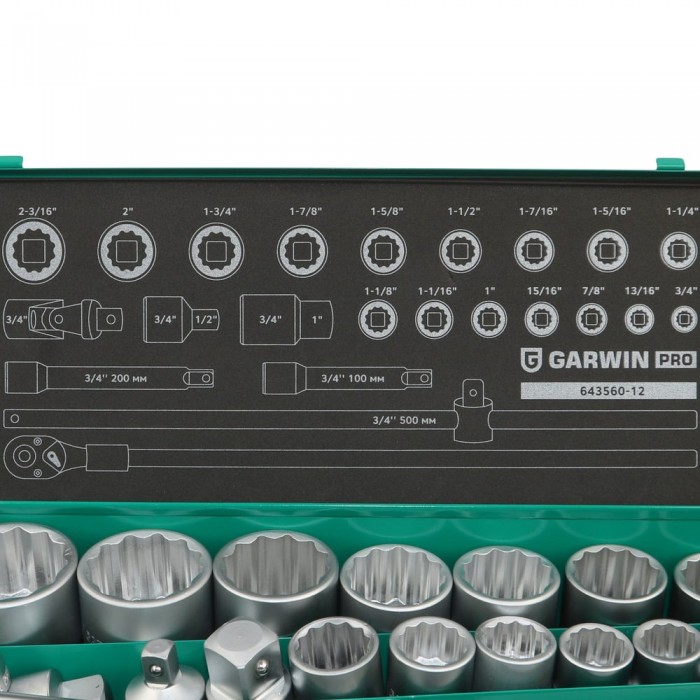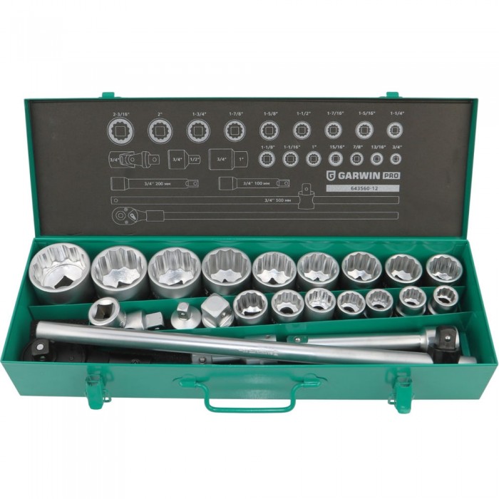 Набор торцевых головок дюймовых 3/4" 12 гр., 3/4"- 2", 23 пр., GARWIN PRO, 643560-12