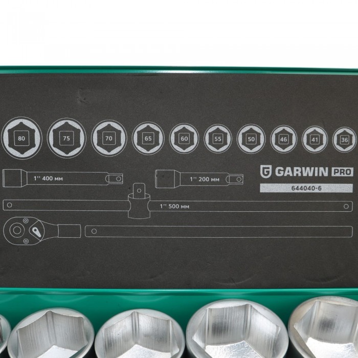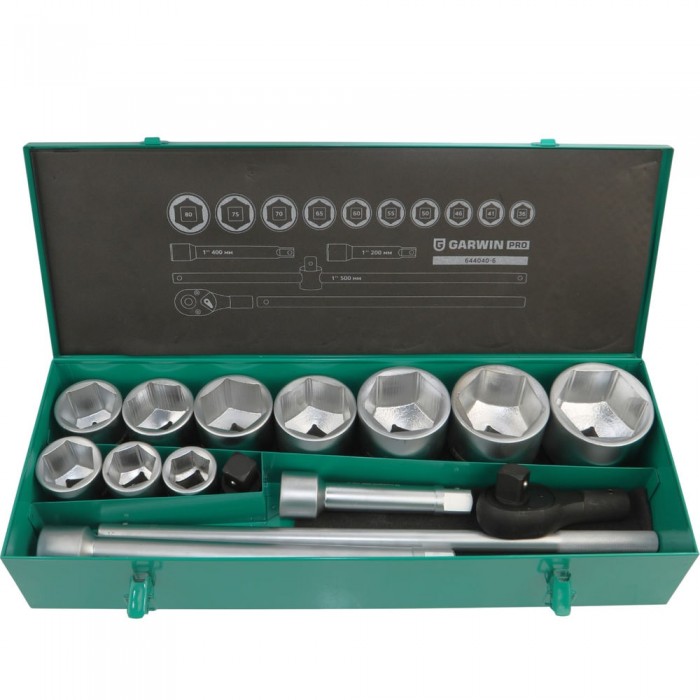 Набор торцевых головок 1", 6 гр., 14 пр., 36-80 мм, GARWIN PRO, 644040-6