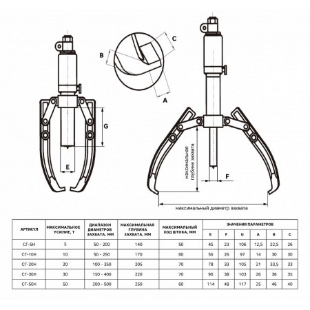 Съёмник гидравлический со встроенным насосом самоцентрирующийся; СГС-10У; 10 т, GARWIN PRO, 811526-10