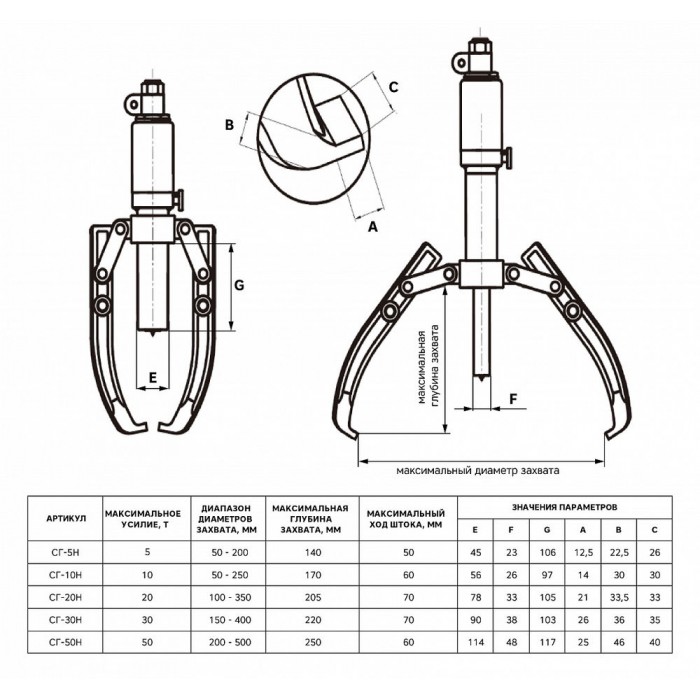 Съёмник гидравлический со встроенным насосом самоцентрирующийся СГС-5У; 5 т, GARWIN PRO, 811526-5