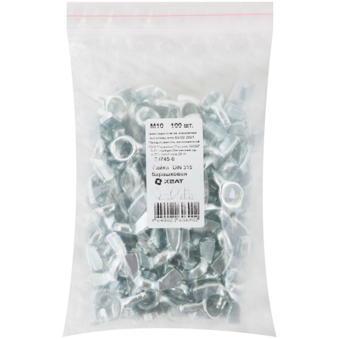 Гайка барашковая (DIN 315) М10 100 шт Фасовка (28745-0)