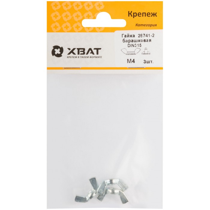 Гайка барашковая (DIN 315) М4 (фасовка 3 шт) (28741-2)