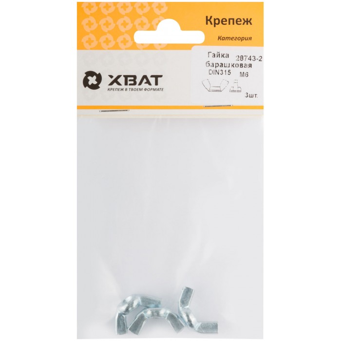 Гайка барашковая (DIN 315) М6 (фасовка 3 шт) (28743-2)