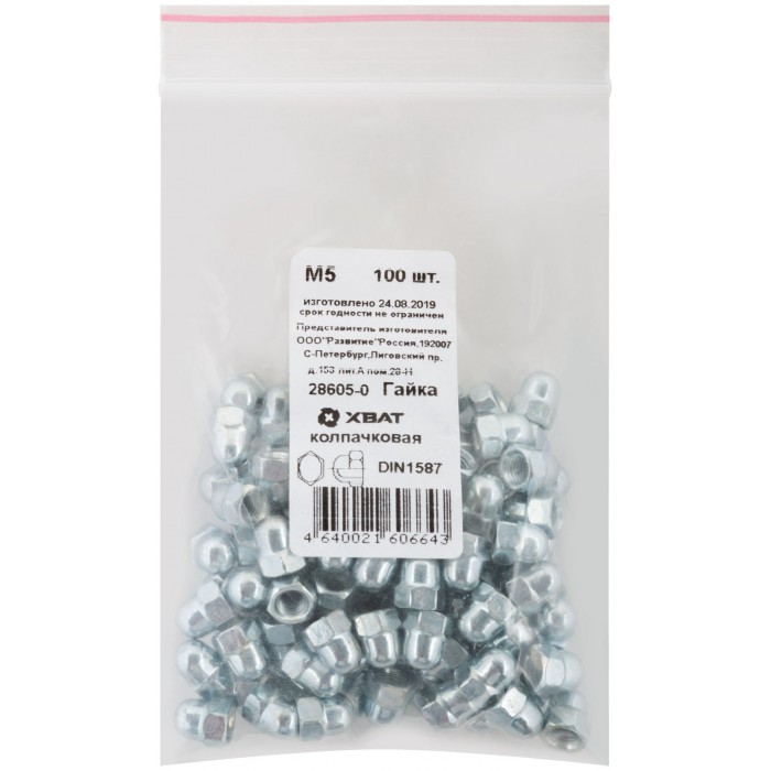 Гайка колпачковая М5 100 шт DIN1587 Фасовка (28605-0)
