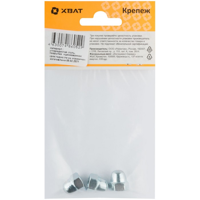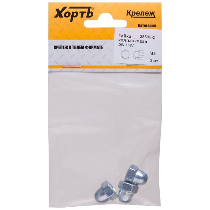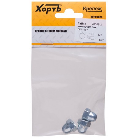 Оцинкованная. Колпачок гайки защищает резьбу от механических повреждений и коррозии, предохраняет от получения травм, а также улучшает внешний вид соединения.