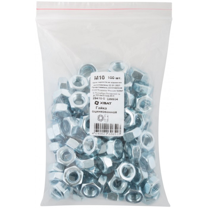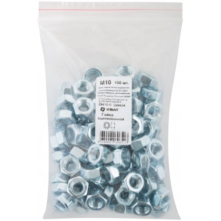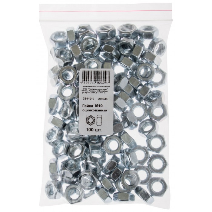 Гайка оцинкованная М10 100 шт DIN 934 Фасовка (28410-0)