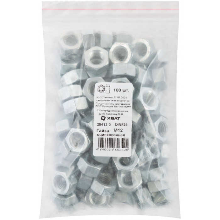 Гайка оцинкованная М12 100 шт DIN 934 Фасовка (28412-0)
