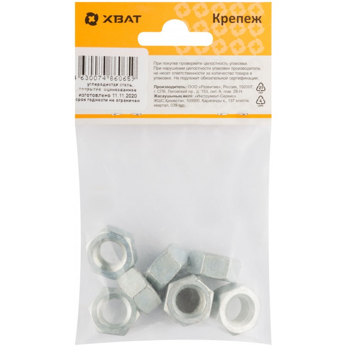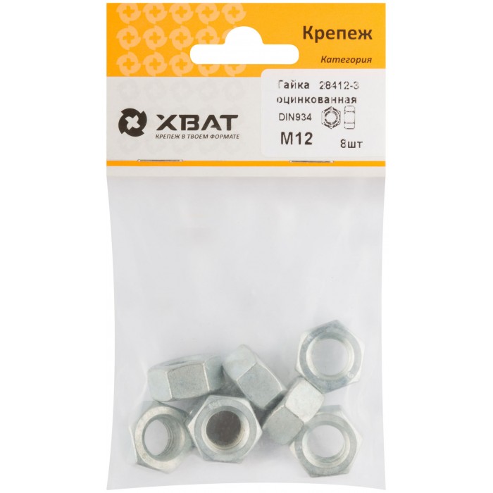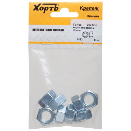Гайка оцинкованная М12 DIN 934 (фасовка 8шт.) (28412-3)