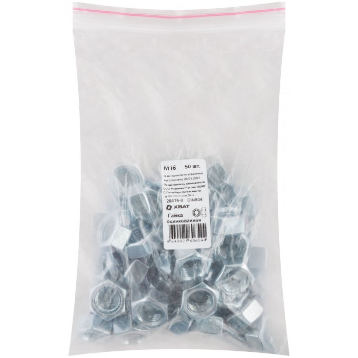 Гайка оцинкованная М16 50 шт DIN 934 Фасовка (28416-0)
