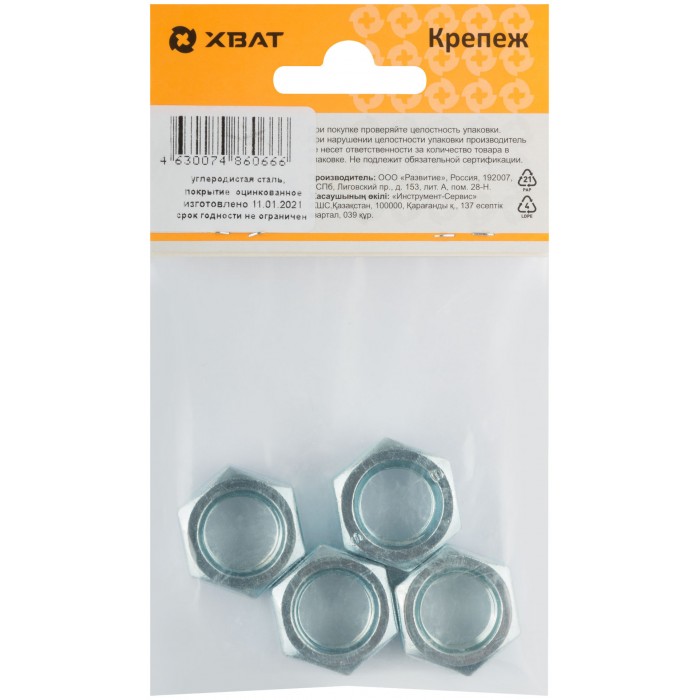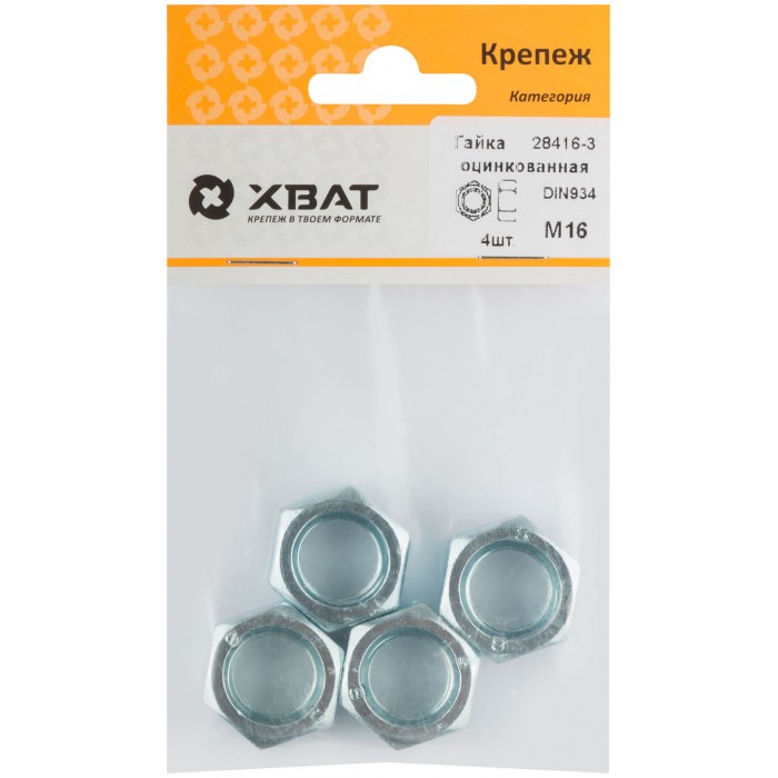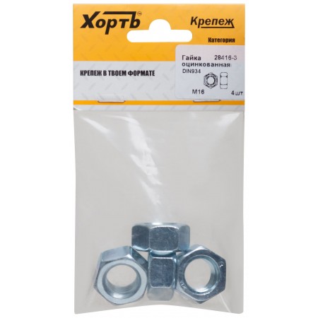 Гайка оцинкованная М16 DIN 934 (фасовка 4 шт.) (28416-3)