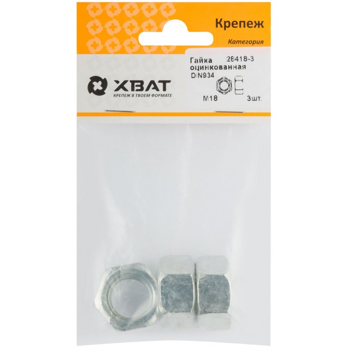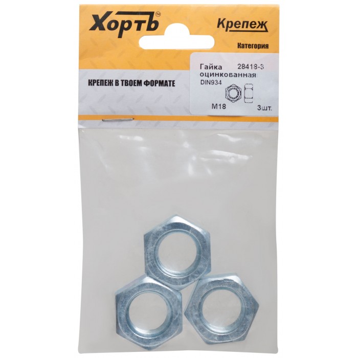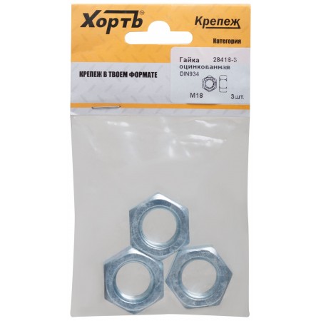 Гайка оцинкованная М18 DIN 934 (фасовка 3 шт.) (28418-3)