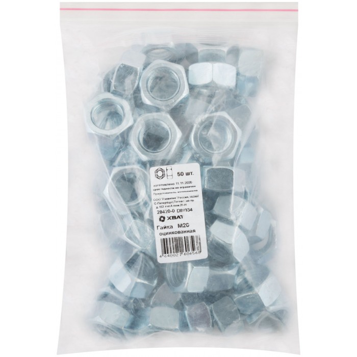 Гайка оцинкованная М20 50 шт DIN 934 Фасовка (28420-0)