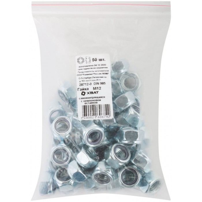 Гайка самоконтрящаяся с нейлоновой вставкой М12 50 шт DIN 985 Фасовка (28712-0)