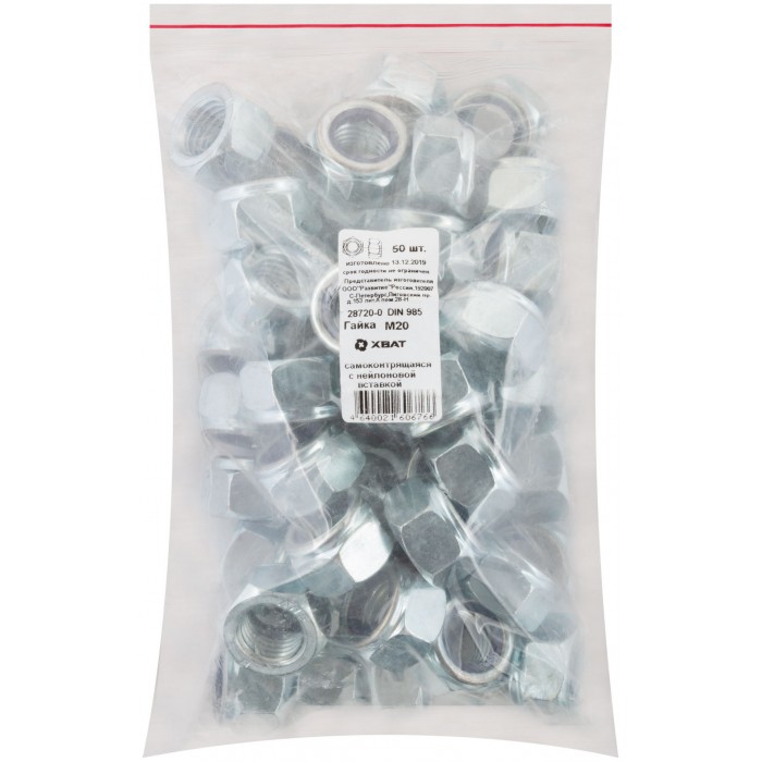 Гайка самоконтрящаяся с нейлоновой вставкой М20 50 шт DIN 985 Фасовка (28720-0)