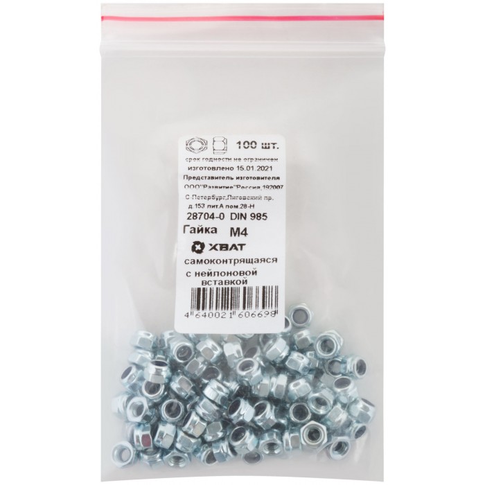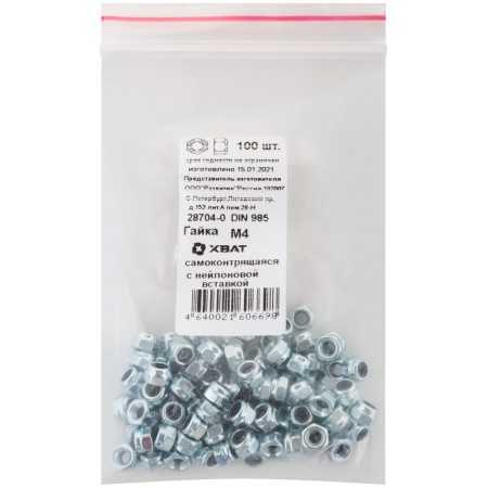 Гайка самоконтрящаяся с нейлоновой вставкой М4 100 шт DIN 985 Фасовка (28704-0)