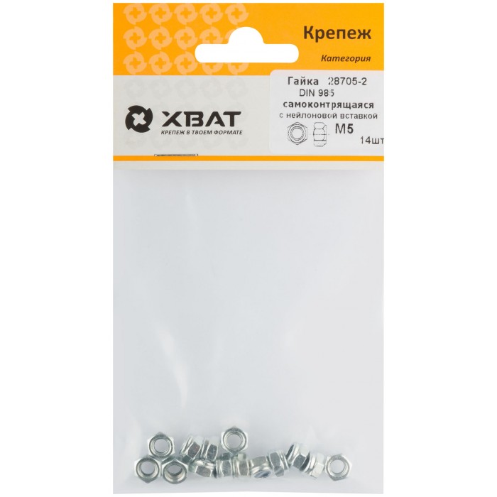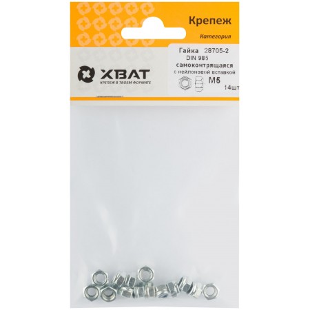 Гайка самоконтрящаяся с нейлоновой вставкой М5 ( фасовка 14 шт ) DIN 985 (28705-2)