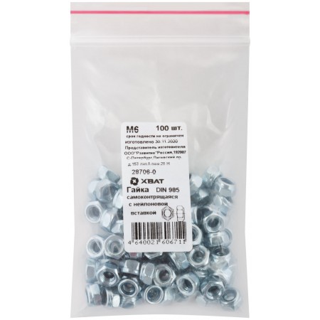 Гайка самоконтрящаяся с нейлоновой вставкой М6 100 шт DIN 985 Фасовка (28706-0)