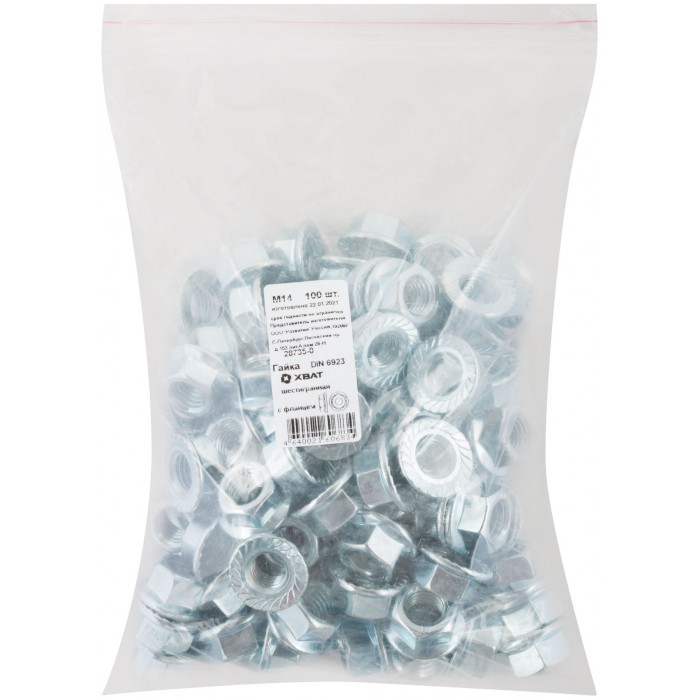 Гайка шестигранная с фланцем (DIN 6923) М14 100 шт Фасовка (28735-0)