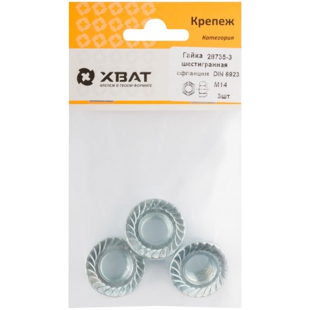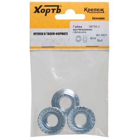 Гайка шестигранная с фланцем (DIN 6923) М14 (фасовка 3 шт) (28735-3)
