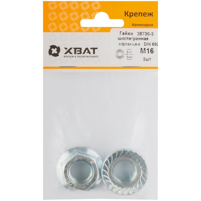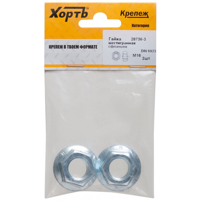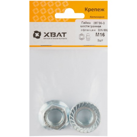 Гайка шестигранная с фланцем (DIN 6923) М16 (фасовка 2 шт) (28736-3)