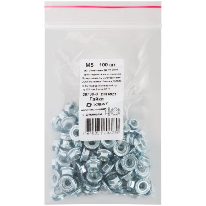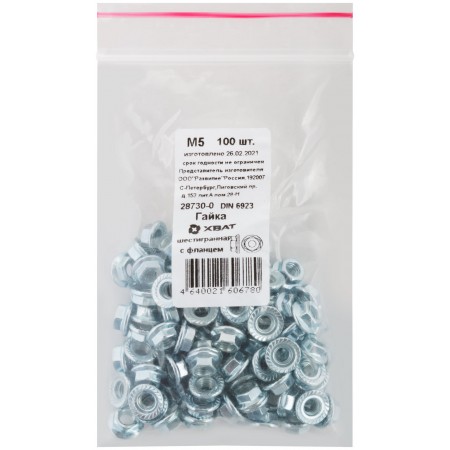 Гайка шестигранная с фланцем (DIN 6923) М5 100 шт Фасовка (28730-0)