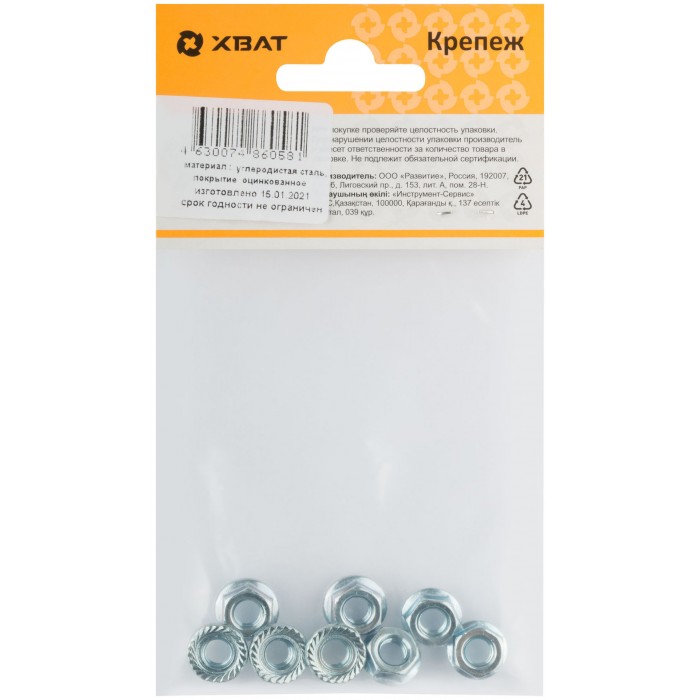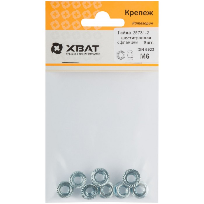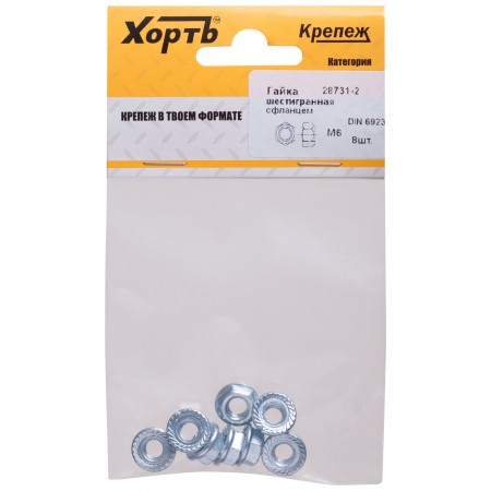 Гайка шестигранная с фланцем (DIN 6923) М6 (фасовка 8 шт) (28731-2)
