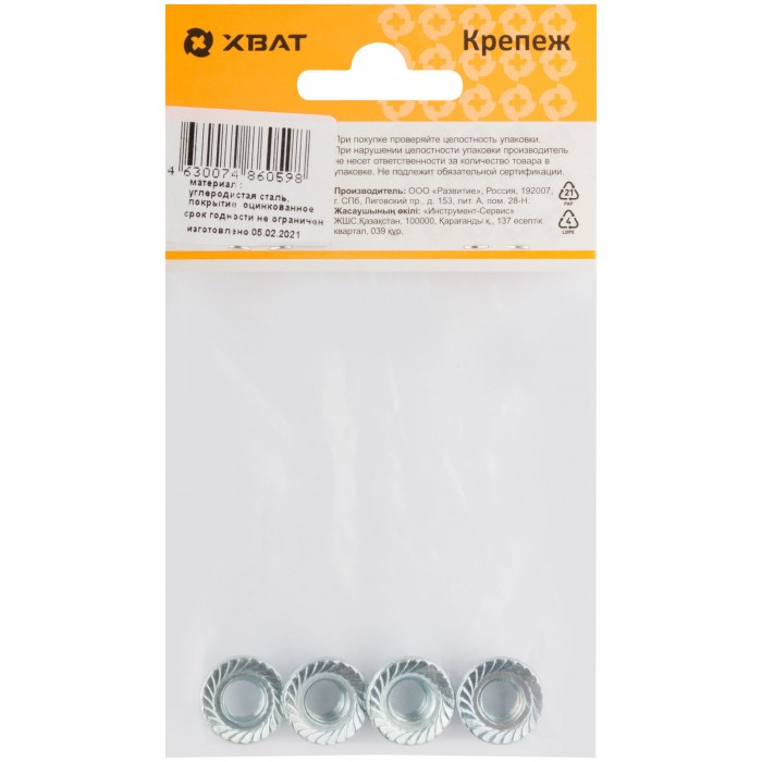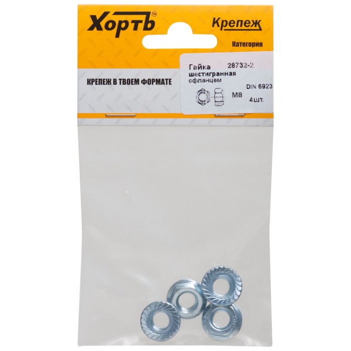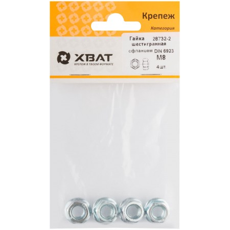 Гайка шестигранная с фланцем (DIN 6923) М8 (фасовка 4 шт) (28732-2)