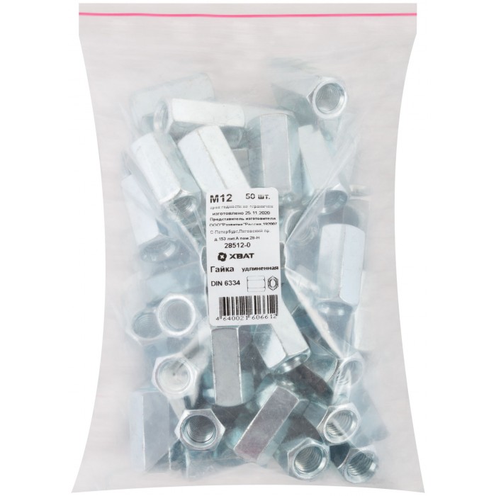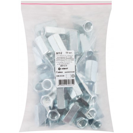 Гайка удлиненная М12 50 шт DIN 6334 Фасовка (28512-0)