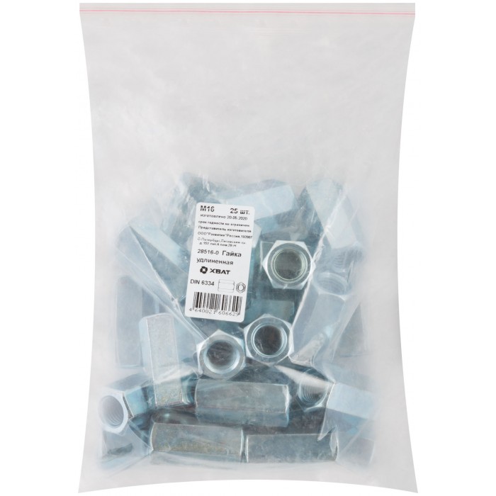 Гайка удлиненная М16 25 шт DIN 6334 Фасовка (28516-0)