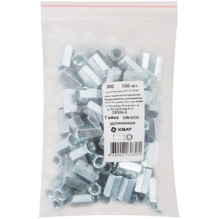 Гайка удлиненная М6 100 шт DIN 6334 Фасовка (28506-0)