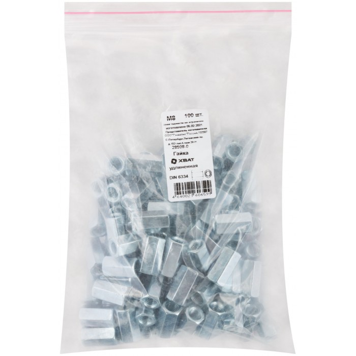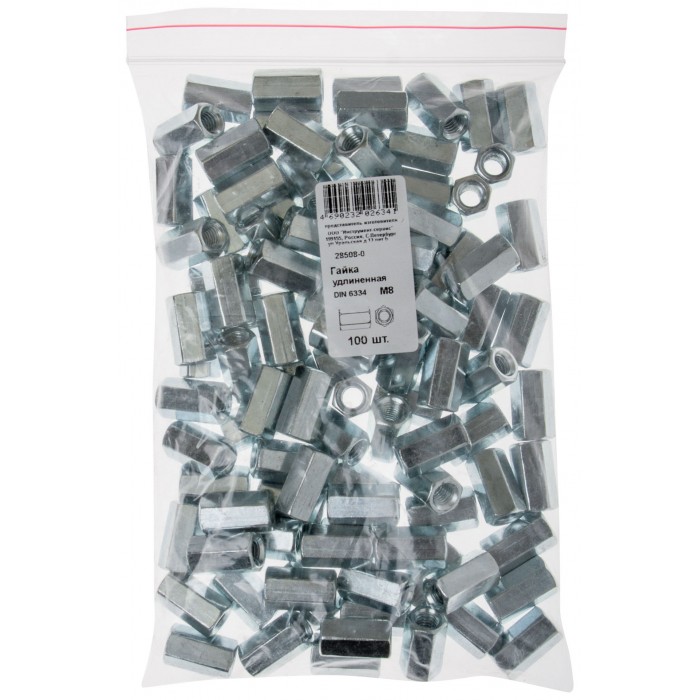 Гайка удлиненная М8 100 шт DIN 6334 Фасовка (28508-0)