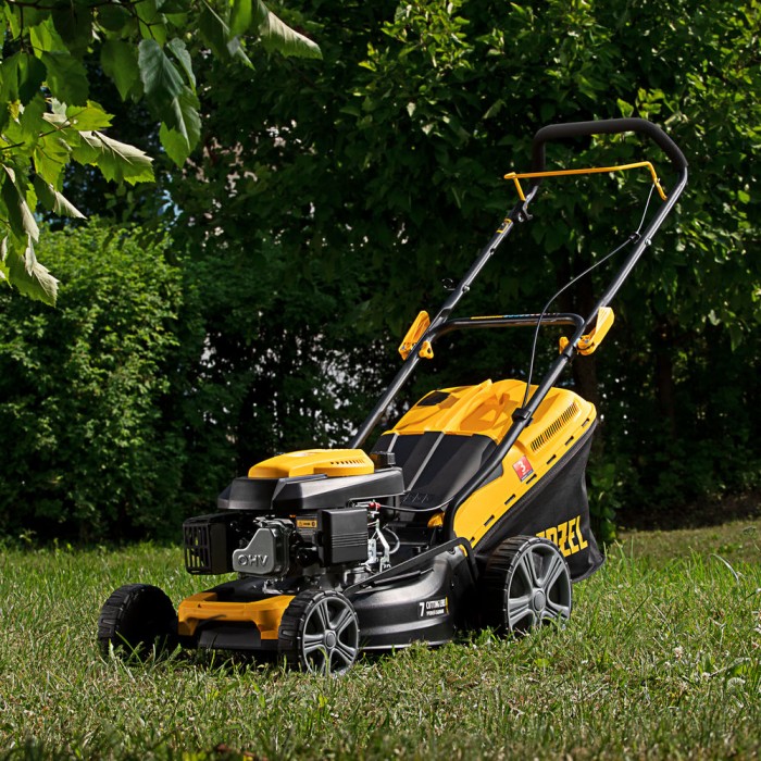 Газонокосилка бензиновая GLD-460, 146 куб.см, ширина 46 см, ручная, 7 уровней, травосборник 50 л Denzel (58802)