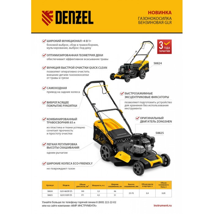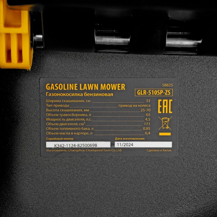 Газонокосилка бензиновая GLR-510SP-ZS, 171 см3, ширина 51 см, привод, травосборник 65 л Denzel (58825)