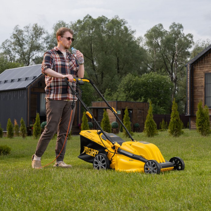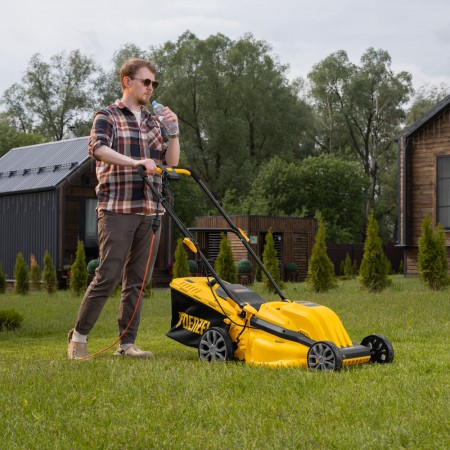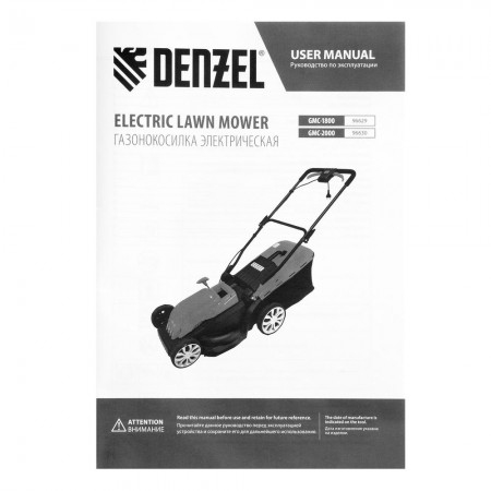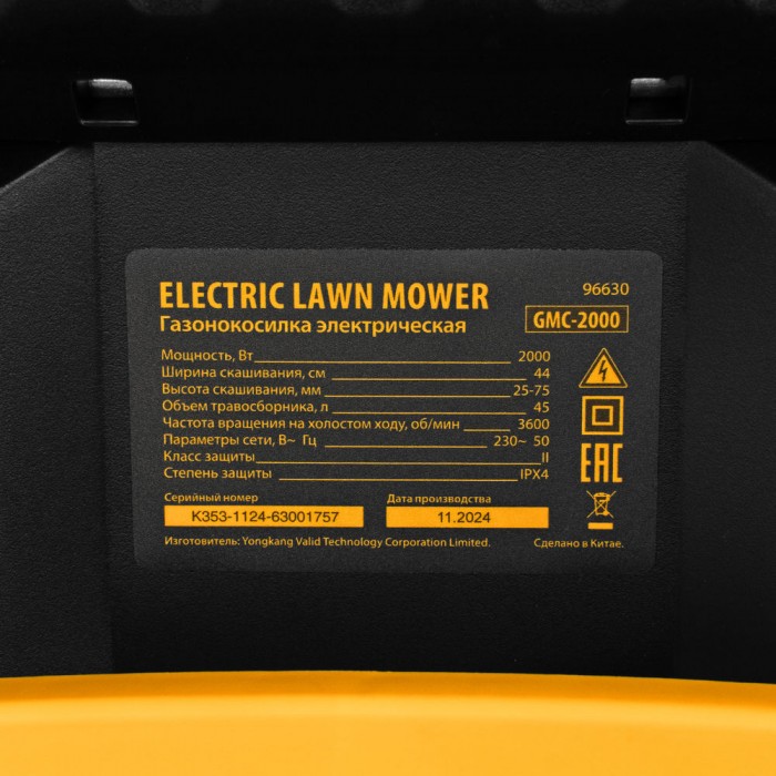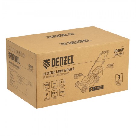 Газонокосилка электрическая GMC-2000, шир. 44см, 2000 Вт, 6 уров., травосб. 45 л Denzel (96630)