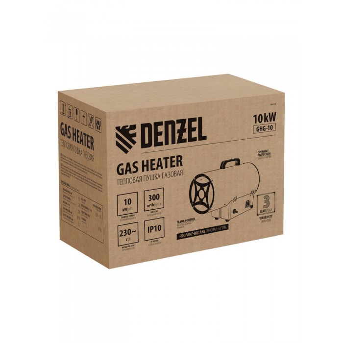 Газовая тепловая пушка GHG-10, 10 кВт, 300 м3/ч, пропан-бутан Denzel (96476)