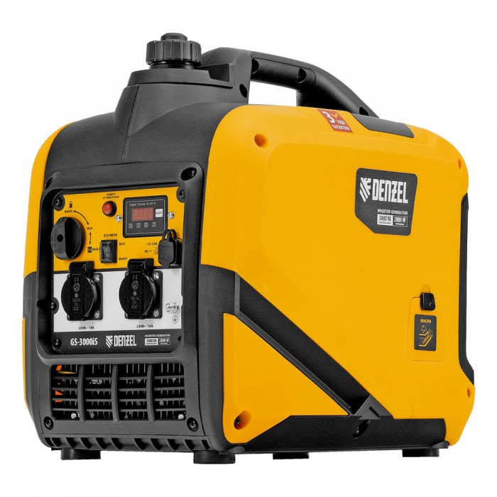 Генератор инверторный GS-3000iS, 3,0 кВт, 230 В, закрытый корпус, ручной старт DENZEL (94716)