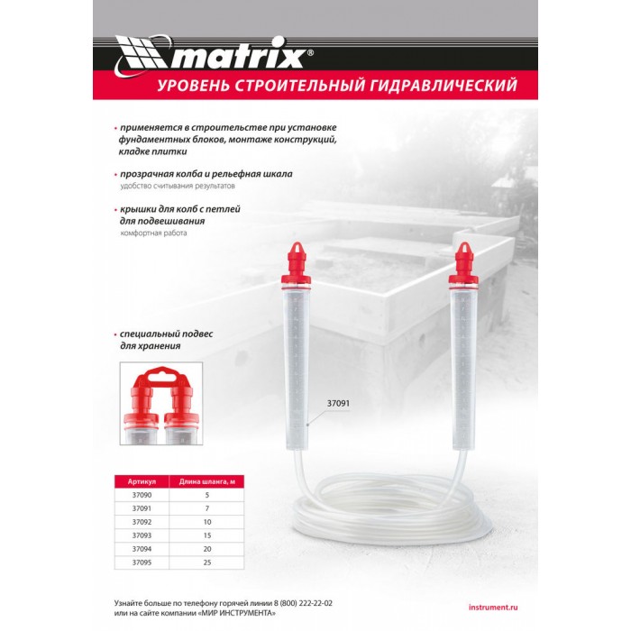 Гидроуровень,удлиненная колба, рельефная градуировка, 7м Matrix (37091)