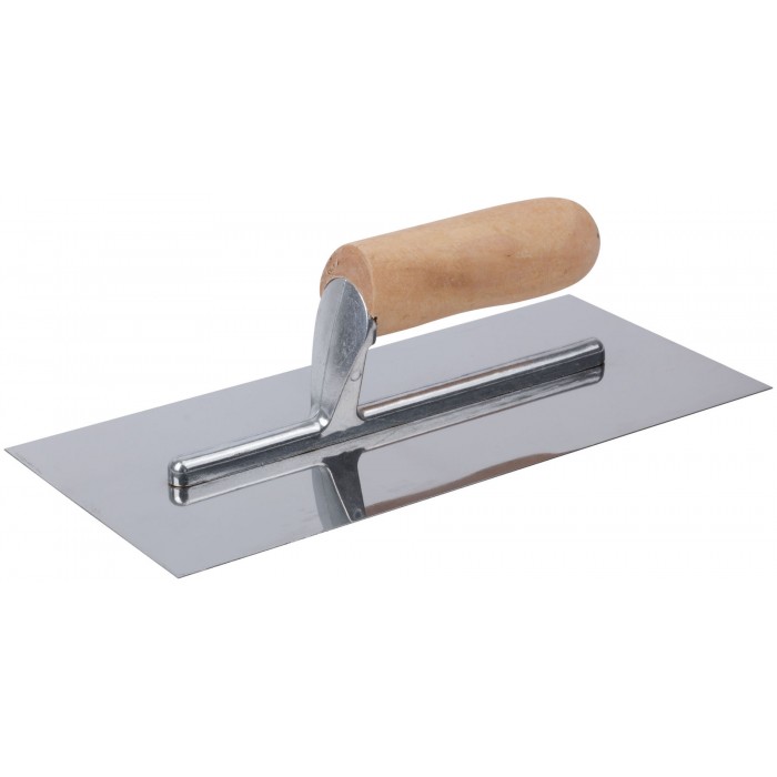 Гладилка нержавеющая с деревянной ручкой Профи плоская 280х130 мм (05140)