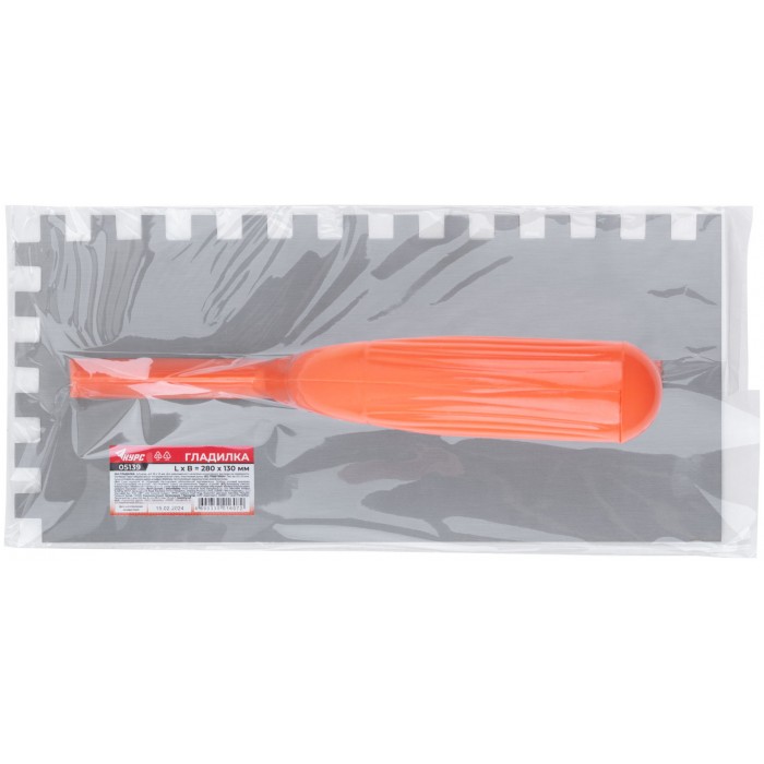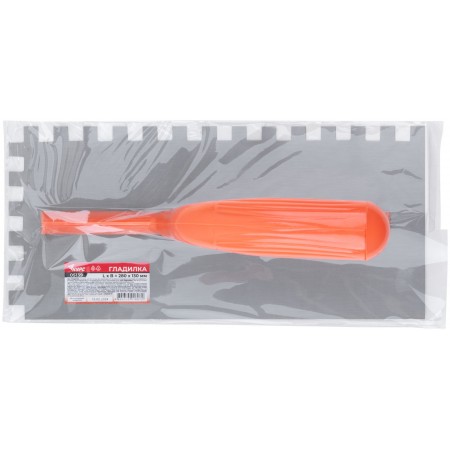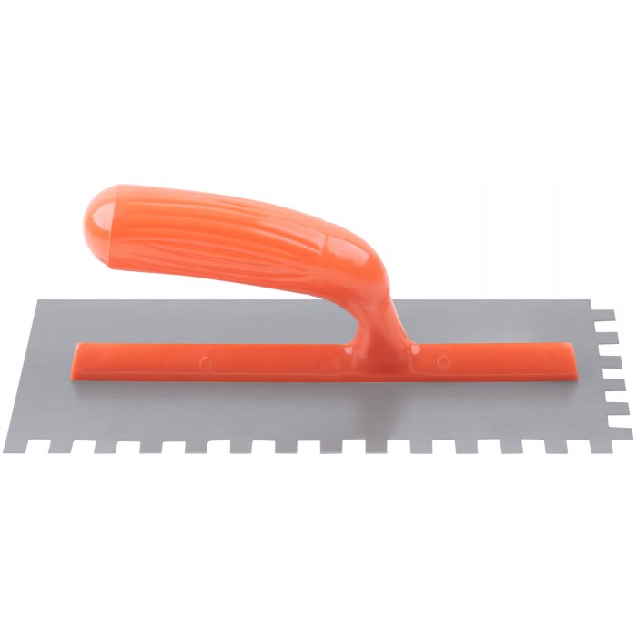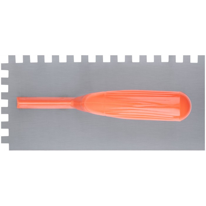 Гладилка стальная с пластиковой ручкой, 280х130 мм зубчатая, зуб 10х10 мм (05139)