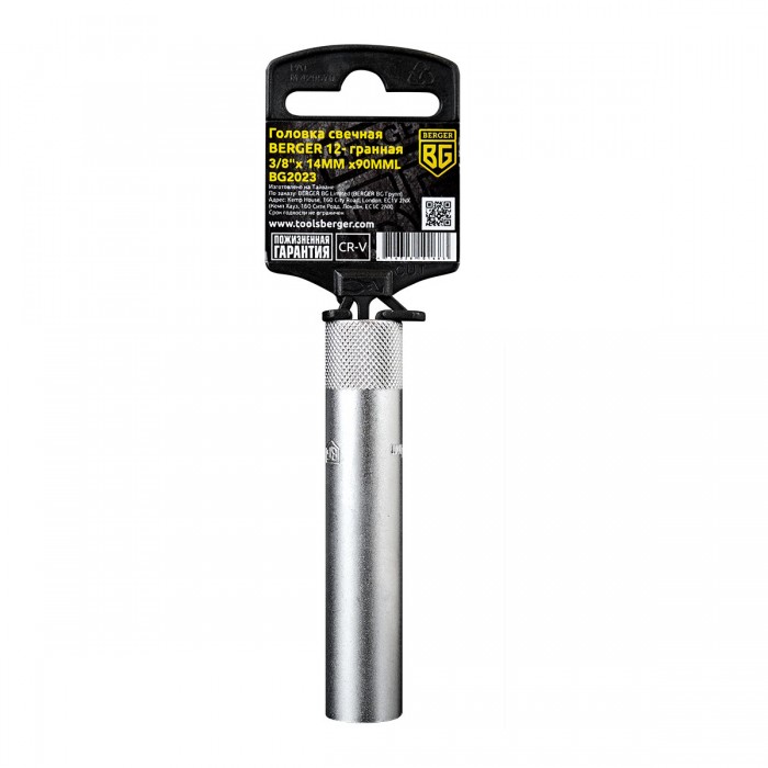 Головка свечная 12 - гранная 3/8" - 14 мм, длинна 90мм BERGER (тонкостенная внешний диаметр 18 мм)
