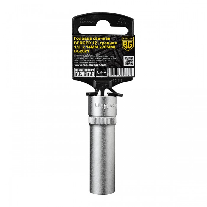 Головка свечная 12- гранная 1/2" 14мм, длинна 70мм BERGER (тонкостенная внешний диаметр 18 мм)