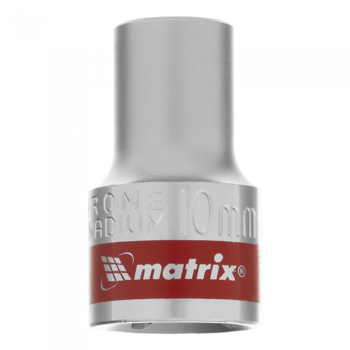 Головка торцевая, 10 мм, двенадцатигранная, CrV, под квадрат 1/2, хромированная Matrix
