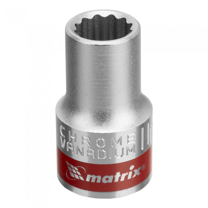 Головка торцевая, 11 мм, двенадцатигранная, CrV, под квадрат 1/2, хромированная Matrix