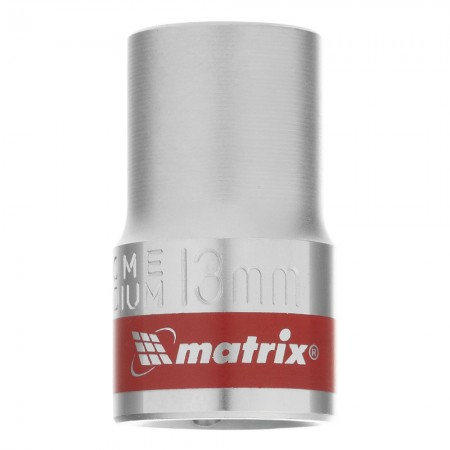 Головка торцевая, 13 мм, двенадцатигранная, CrV, под квадрат 1/2, хромированная Matrix